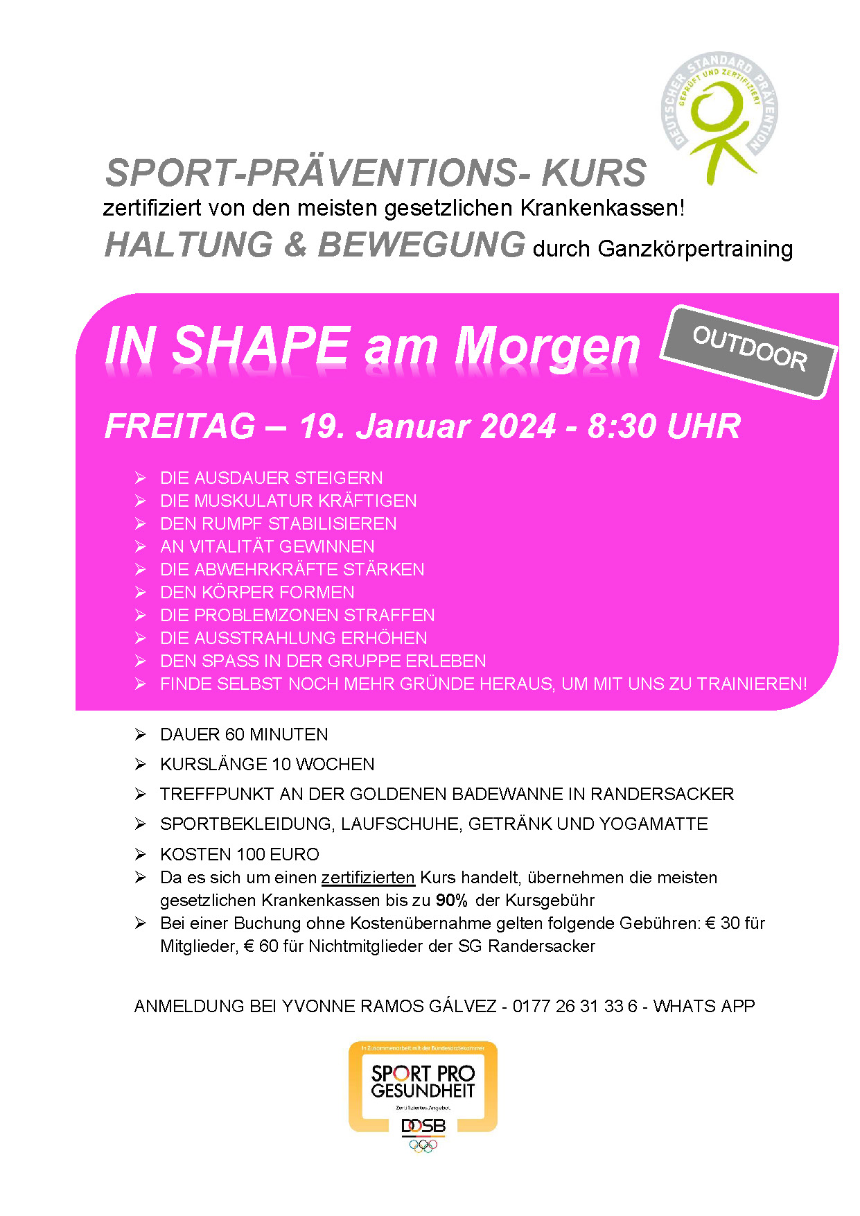 Randersackerer Hobby- & Freizeitmannschaften können sich bei Sportleiter Jochen Gruß melden. Mobil: 0179-1141769 oder Diese E-Mail-Adresse ist vor Spambots geschützt! Zur Anzeige muss JavaScript eingeschaltet sein!